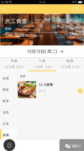 满客宝智慧食堂管理系统助力企业食堂实现个性化菜谱发布,食堂可以围绕“12·12”活动自定义个性化菜谱,唤起就餐者的消费热情,提高食堂就餐效率